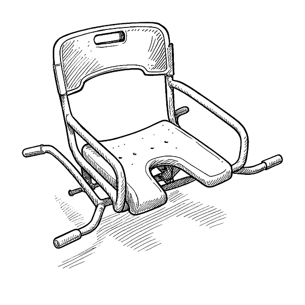 Der bis zu 360 Grad schwenkbare Sitz mit Rückenlehne ermöglicht auch das Sitzen außerhalb der Wanne. Das erleichtert das Anheben der Beine über den Wannenrand.